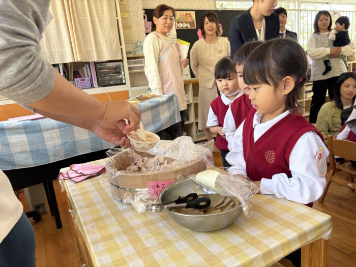 堀之内幼稚園恒例!入園・進級のお祝いにお赤飯と鰯の黒はんぺんをいただきます。